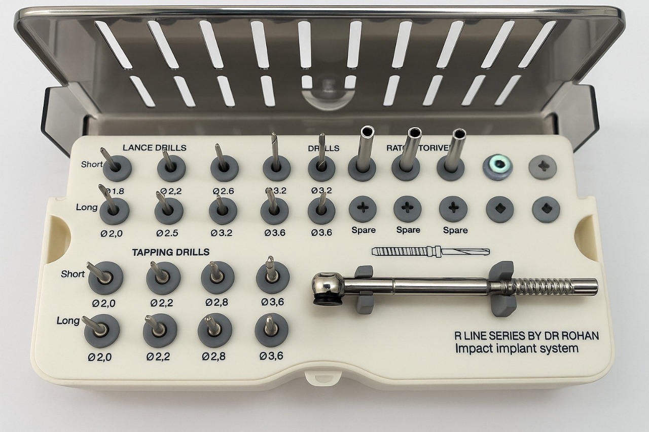 – A single advanced torque ratchet for controlled torque application during implant placement.